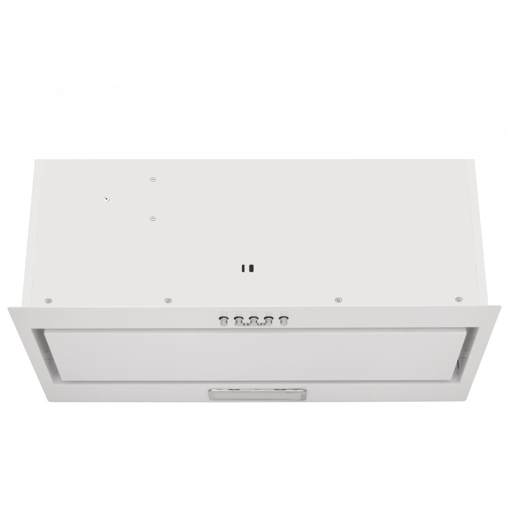 Витяжка повністю вбудовується в звичайну кухонну шафку шириною 60 см. Видимою залишається тільки передня панель з нержавіючої сталі, яка стійка до вологи та високих температур. Лаконічний дизайн витяжки гармонійно поєднується з кухнею і в стилі мінімалізм, хай-тек чи модерн.