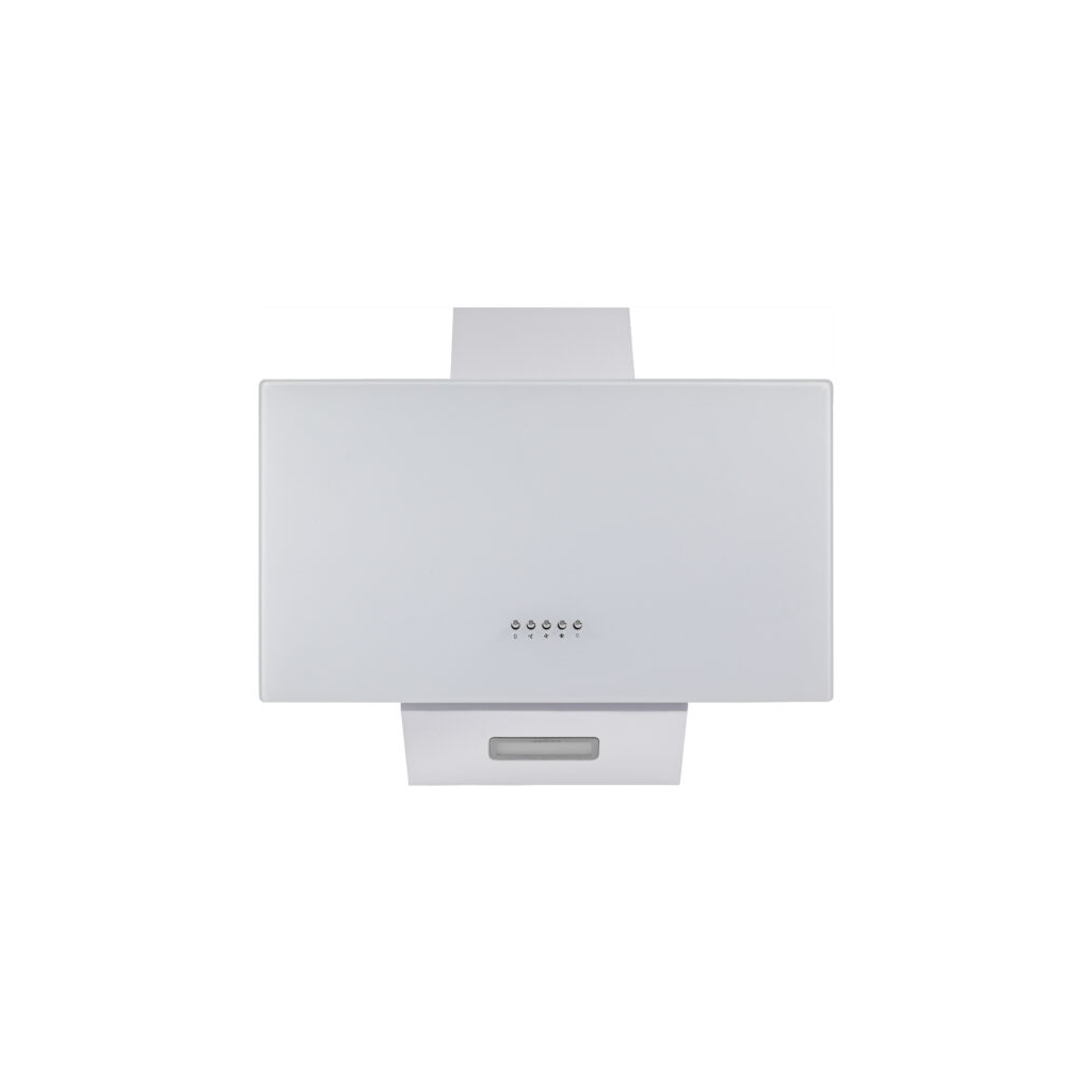 Фасад виконаний із загартованого скла білого кольору шириною 60 см. Така витяжка чудово підійде для невеликої кухні площею до 20 кв. Монтується на стіну над поверхнею плити та працює у двох режимах – відведення (при підключенні витяжки до системи вентиляції) та рециркуляції (при використанні змінного вугільного фільтра у витяжці).