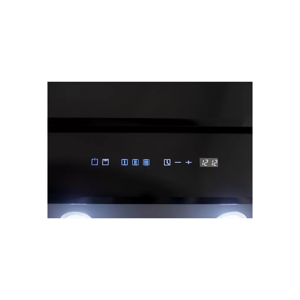 Витяжка оснащена сучасним сенсорним керуванням, яке забезпечує легкість та точність у налаштуванні всіх параметрів. На дисплеї відображаються поточні налаштування, що робить інтуїтивно зрозумілим процес управління. Висвітлення робочої зони здійснюється за допомогою світлодіодів потужністю 2x2 Вт, які забезпечують яскраве та економічне світло, покращуючи видимість та створюючи комфортні умови для приготування їжі.
