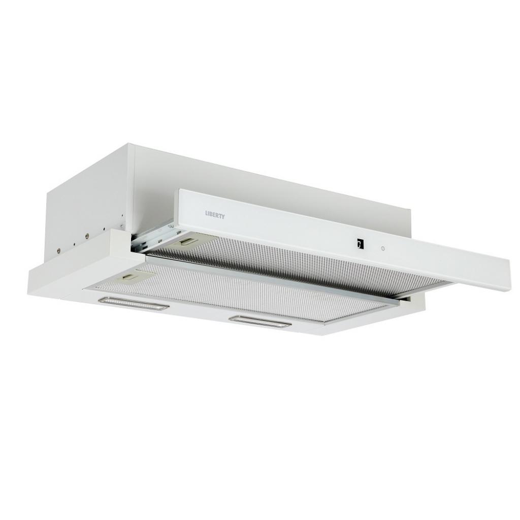 Крім усього, ви зможете вибрати один з трьох режимів роботи, в залежності від ступеня забруднення повітря в приміщенні. Управління просте, механічне і здійснюється за допомогою кнопок. Для освітлення вручений поверхні або плити використовуються дві потужні і економічні галогенні лампочки. Витяжка LIBERTY Slide 265 WTL стане корисним пристроєм, який допоможе створити у вашому будинку свіже повітря і затишну атмосферу.