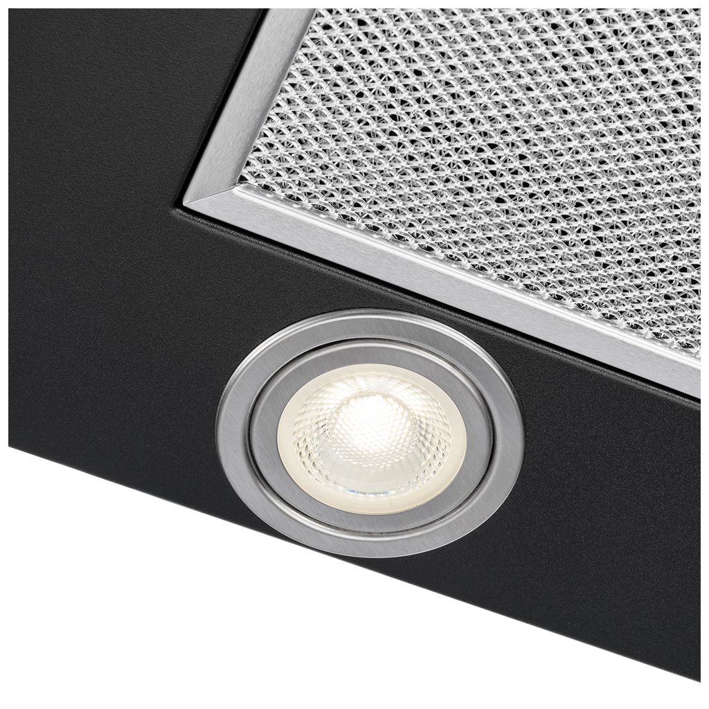 Витяжка оснащена 2ма LED-лампами потужністю 1 Вт. Це додаткове джерело світла, щоб вам було зручно контролювати всі кулінарні процеси в темний час доби, а також романтичне освітлення для особливих вечорів.
