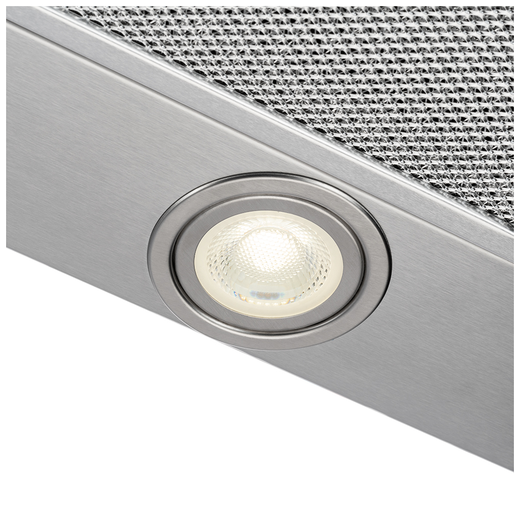 Витяжка оснащена 2ма LED-лампами потужністю 1 Вт. Це додаткове джерело світла, щоб вам було зручно контролювати всі кулінарні процеси в темний час доби, а також романтичне освітлення для особливих вечорів.