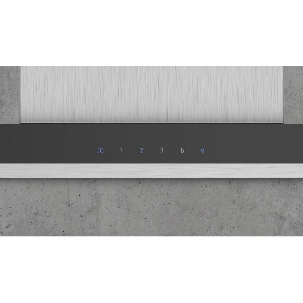 Настінна витяжка виконана в кольорі нержавіючої сталі. Працює в режимі відведення та рециркуляції повітря (для режиму рециркуляції повітря необхідне додаткове обладнання). Має три стандартних режиму потужності і один інтенсивний. Забезпечує бездоганно якість роботи, а також абсолютно безшумну роботу, завдяки спеціальній шумоізоляції.