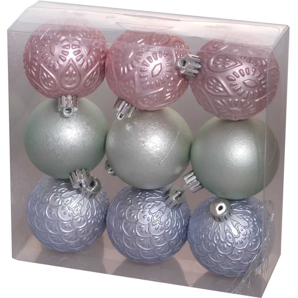 Ялинкова іграшка Chomik кульки з візерунком 9 шт, 6 см, зелений, рожевий, блакитний (5900779840638)