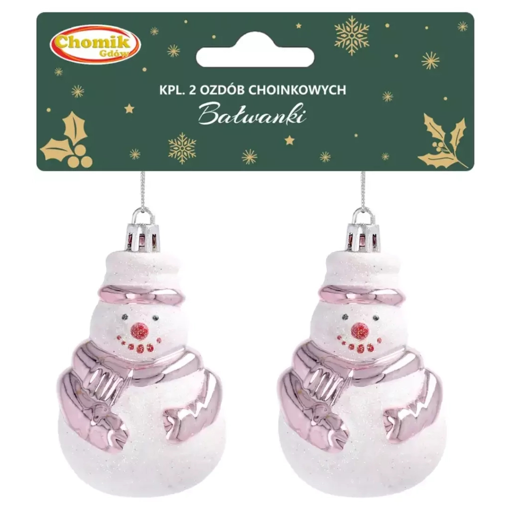 Ялинкова іграшка Chomik Сніговик 2 шт 8 см білий з рожевим (5900779839243)