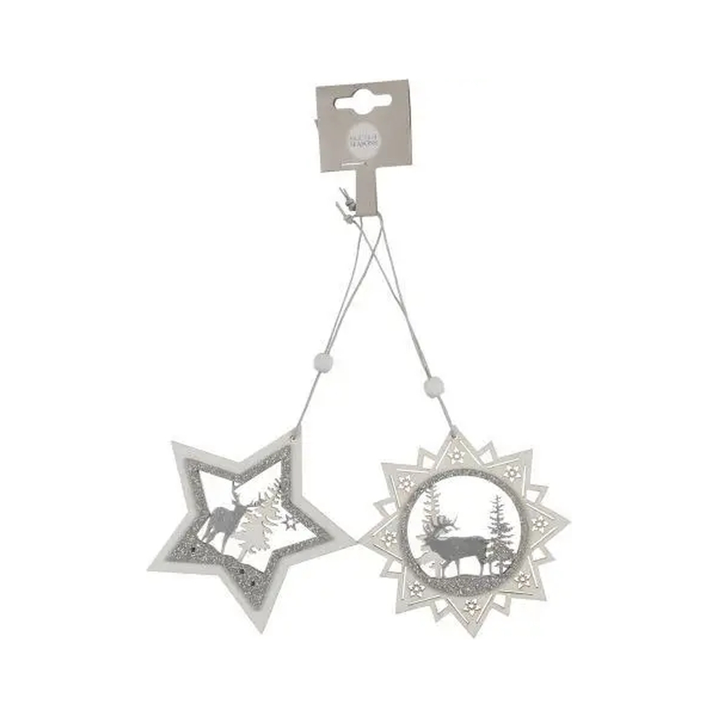 Ялинкова іграшка House Of Seasons Дерев'яна біла Зимова сцена 2 шт 10 см (8718861655698)