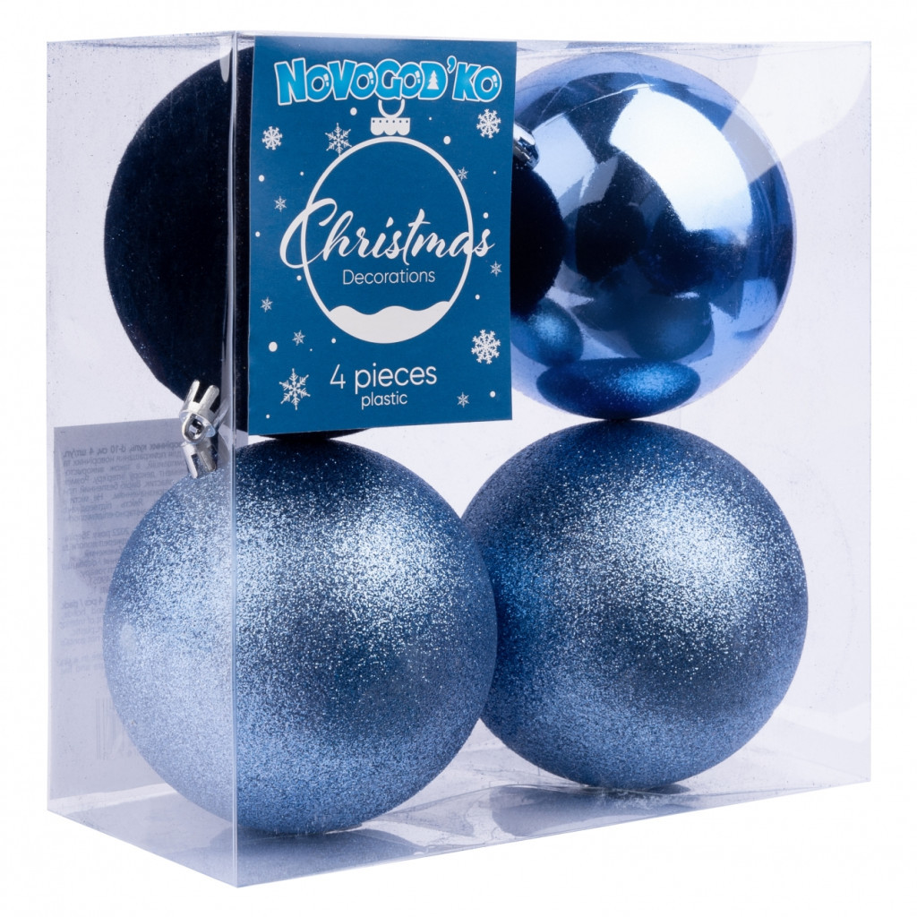 Ялинкова іграшка Novogod`ko 4 шт, 10 см, блакитний матовий (974788)