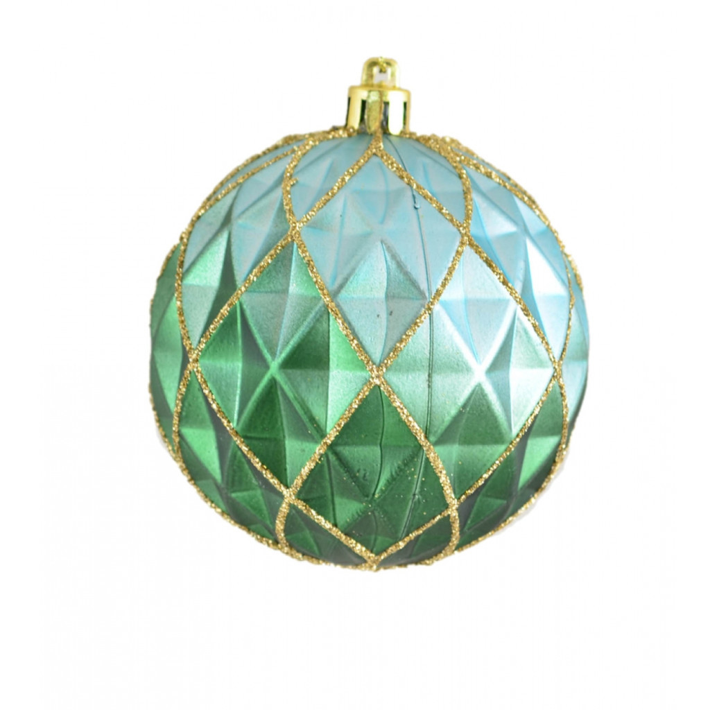 Полігональна куля, декорована глітером, використовується для прикрашання новорічної ялинки, хвойних гілок і декоративних композицій. Матеріал: пластик. Діаметр: 8 см.