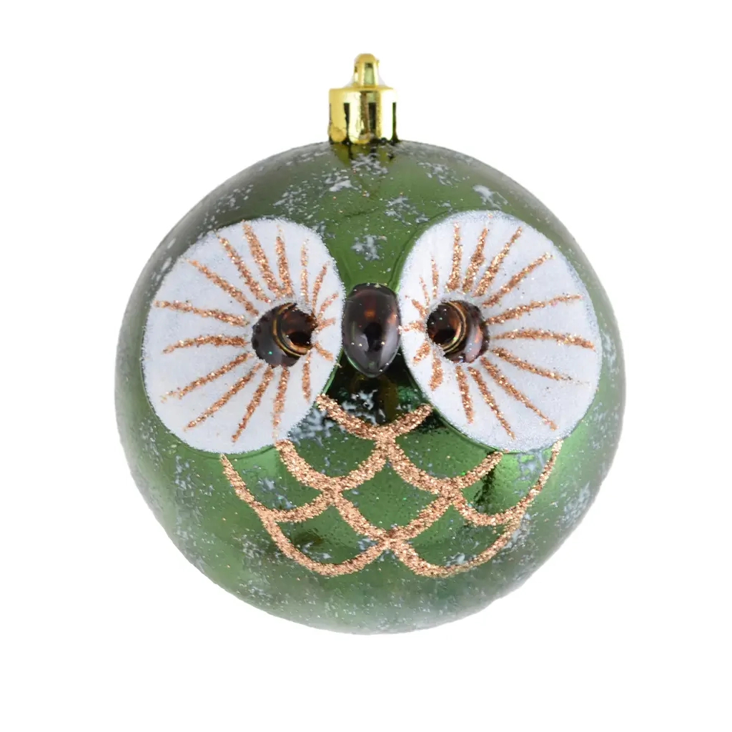 Оригінальна куля у вигляді сови, декорований глітером, використовується для прикрашання новорічної ялинки, хвойних гілок і декоративних композицій.
