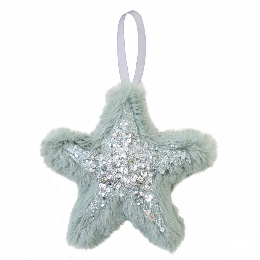 Ялинкова іграшка YES! Fun зірка пухнаста ментолова з декором, 16*16 см (973539)
