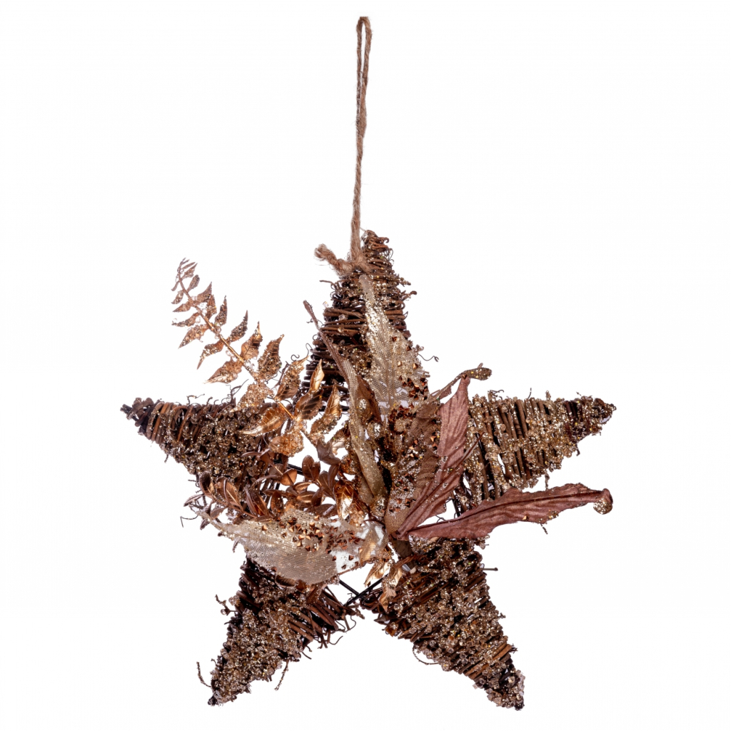Ялинкова іграшка YES! Fun Зірка з декором 30 см, ротанг, золото (974571)