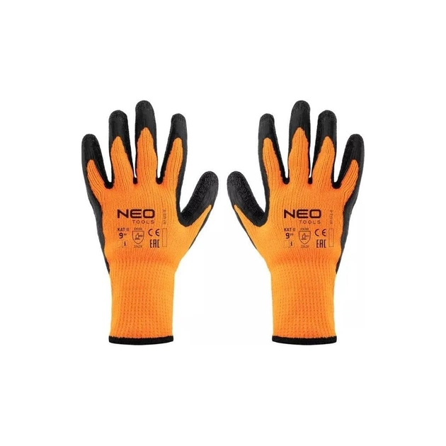 Захисні рукавиці Neo Tools латексне покриття, поліестер, р.9, помаранчево чорні (97-612-9)