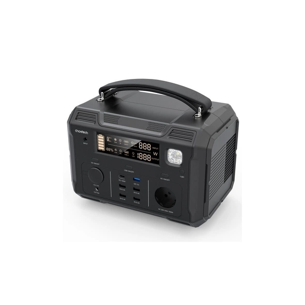 Ця портативна електростанція потужністю 500 Вт оснащена входом/виходом змінного струму, входом/виходом постійного струму, портом QC3.0 USB-A, чотирма портами USB-A 5 В/2,4 А, одним портом USB-C PD потужністю 100 Вт портом прикурювача. Це портативна універсальна електростанція, яка задовольнить будь-які потреби: зарядіть ноутбук, міні-холодильник, дрон та іншу вуличну електроніку під час походу