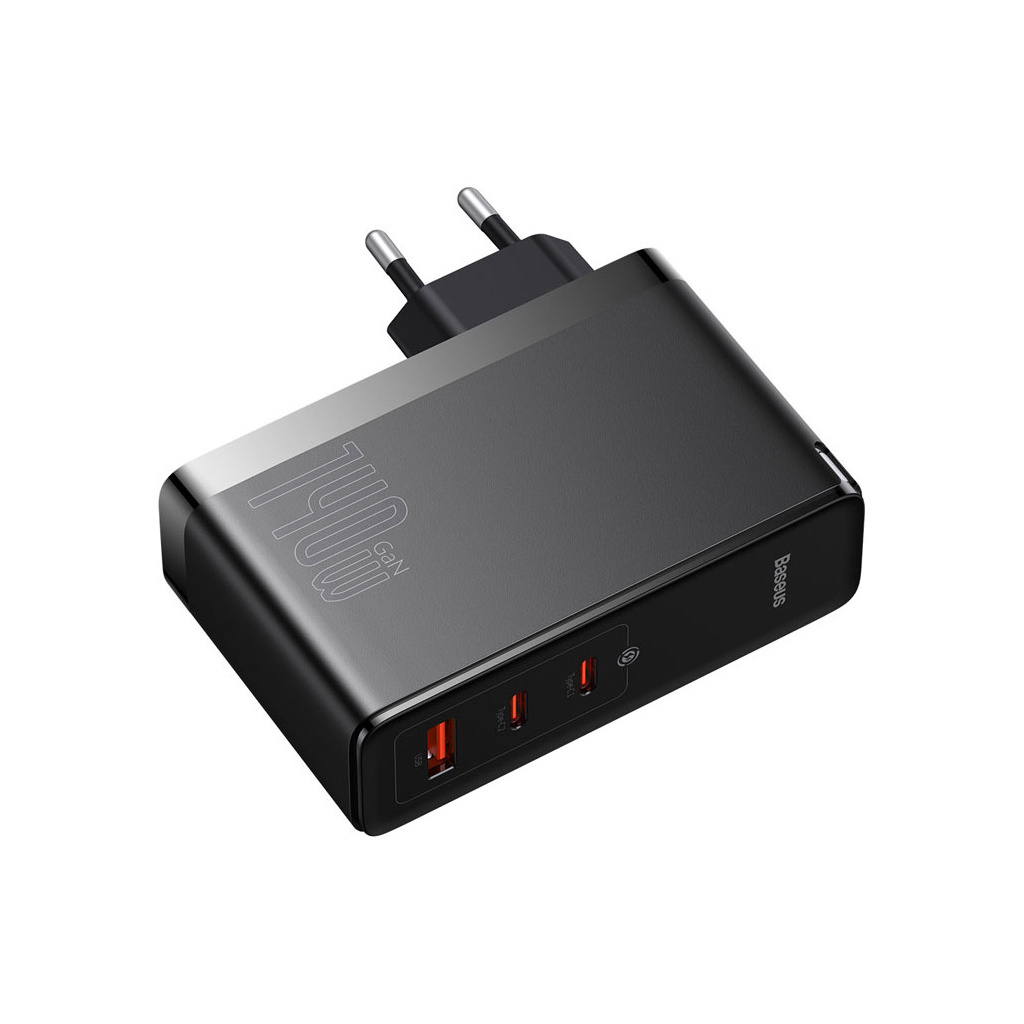 Зарядний пристрій Baseus 2xUSB-C 140W + 1xUSB GaN + cable USB-C to USB-C black (CCGP100201)