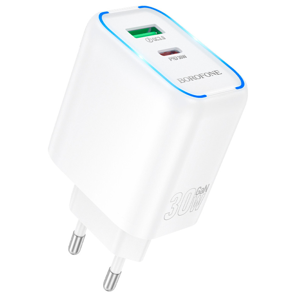 Зарядний пристрій BOROFONE BA89A Destello 1xUSB-C PD30W + 1xUSB QC3.0 White (6941991119361)