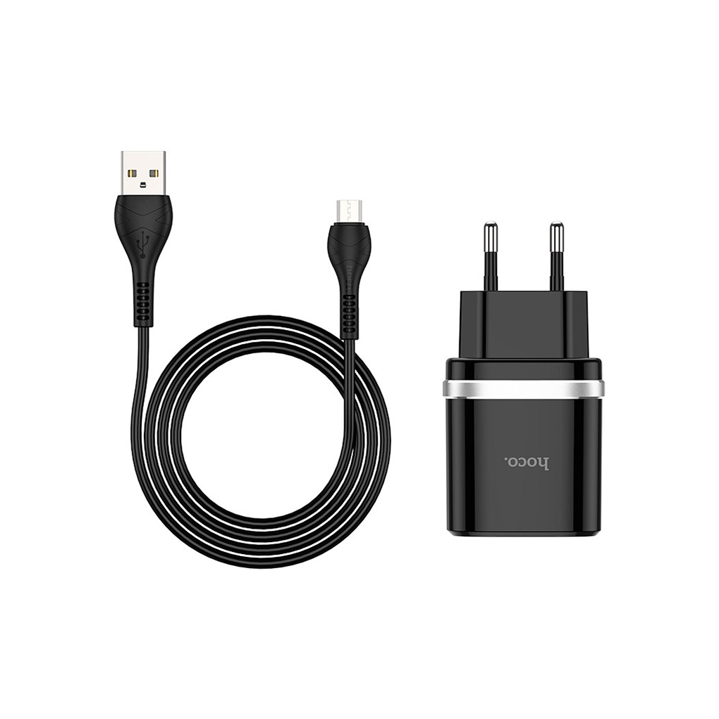 Зарядний пристрій HOCO C12Q Smart USB QC3.0 + cable Micro 18W Black (6931474716279)