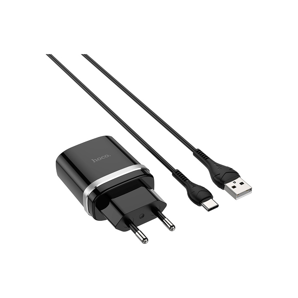 Зарядний пристрій HOCO C12Q Smart USB QC3.0 + cable USB to USB-C 18W Black (6931474716293)