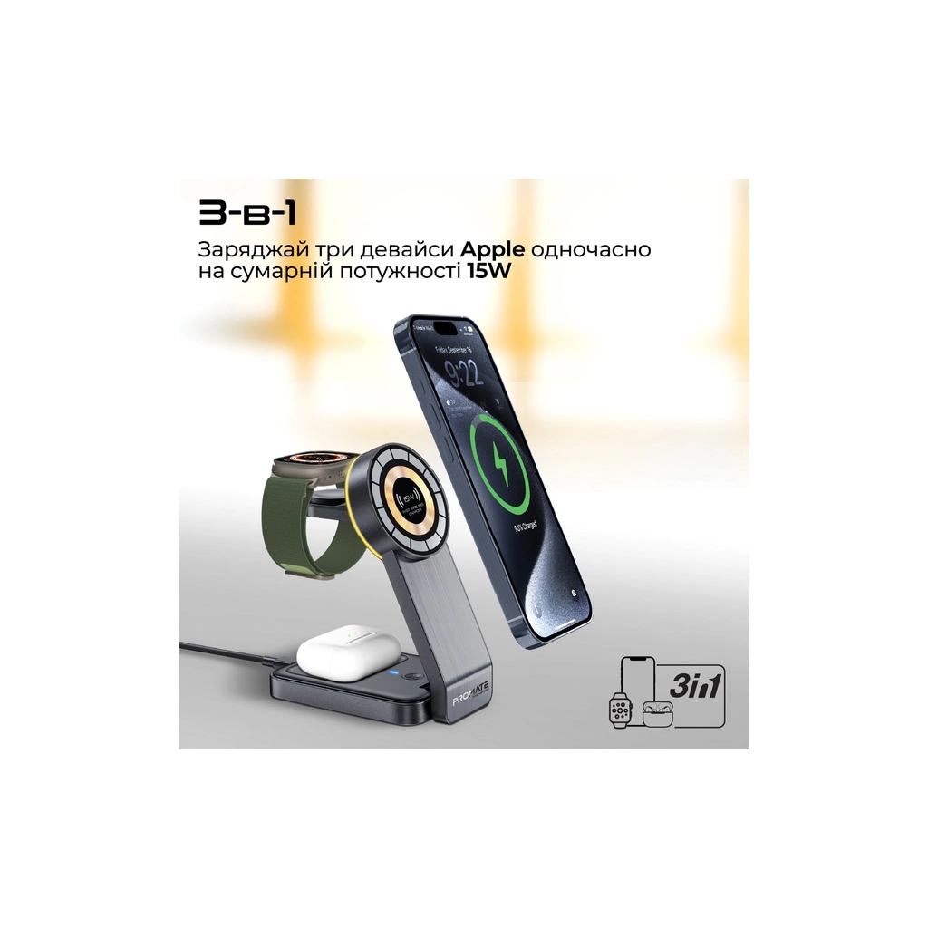 Зарядний пристрій Promate TransFold являє собою втілення інноваційного підходу до бездротової зарядки. Цей безліччю унікальних властивостей, багатофункціональний зарядний пристрій пропонує максимальну зручність для сучасних користувачів. TransFold підтримує одночасну зарядку смартфонів, смарт-годинників та TWS-навушників, забезпечуючи вихідну потужність до 15 Вт.