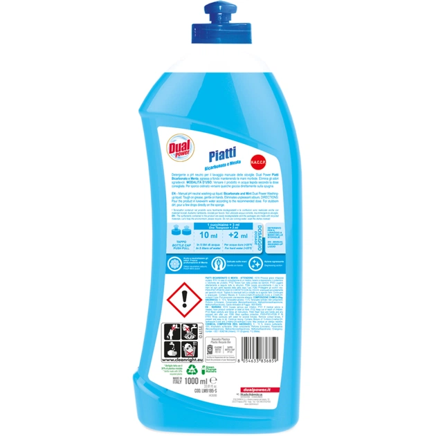 Засіб для ручного миття посуду Dual Power рідкий Сода та шавлія - це надійний вибір для тих, хто цінує якість та ефективність у повсякденному догляді за посудом. Створений в Італії, він поєднує в собі найкращі традиції та сучасні технології. Об'єм 1 літр дозволяє довго насолоджуватися його перевагами.