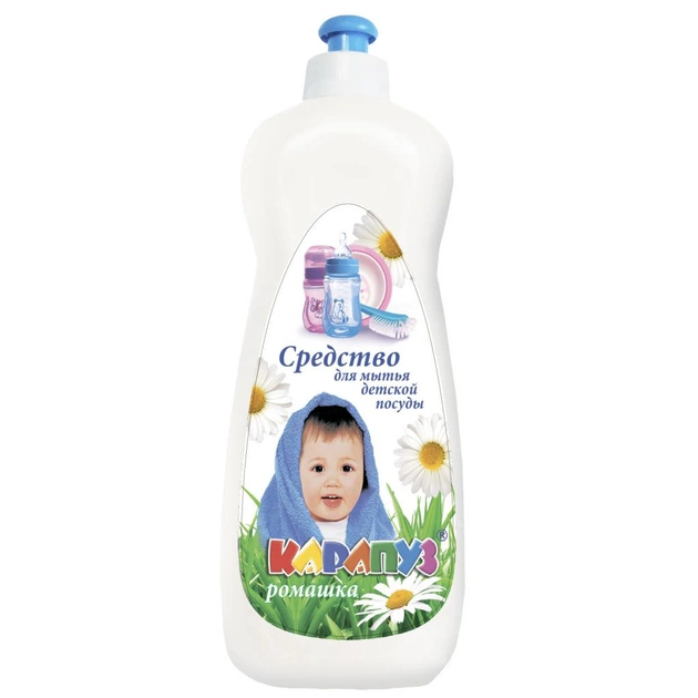 Засіб для миття посуду Карапуз Ромашка ідеально підходить для безпечного миття дитячого посуду, сосок, іграшок, фруктів та інших матеріалів, виготовлених з пластмаси, латексу, фарфору, скла та дерева. Формула на основі рослинних олій швидко біорозкладається, не забруднюючи природу, та не викликає алергічних реакцій.