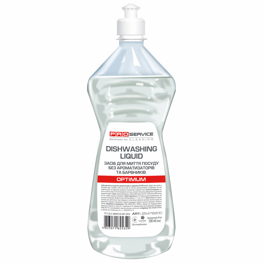 Засіб для ручного миття посуду PRO service Optimum без ароматизаторів та барвників 500 мл (4823071625349)