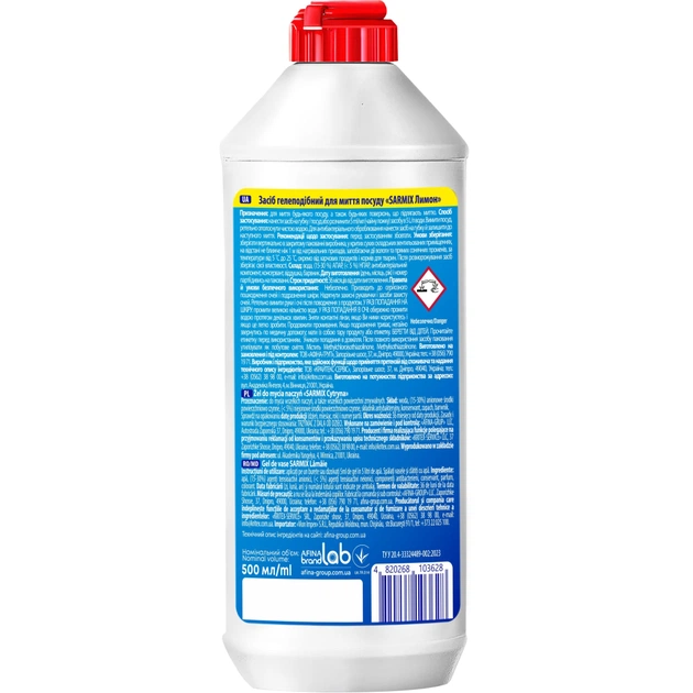 Засіб для ручного миття посуду Sarmix Lemon 500 мл (4820268103628)