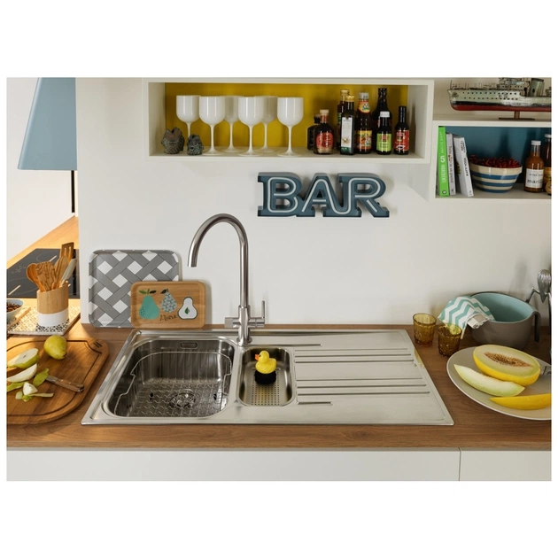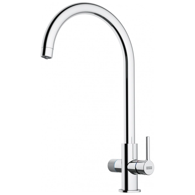 Змішувач Franke Lina J Clear Water 2.0 поєднує класичний J-подібний вилив і можливість подачі фільтрованої води. Поворотний вилив на 360° забезпечує зручну роботу з мийкою будь-якого формату, включно з острівними кухнями. Окремий канал для очищеної води дозволяє використовувати фільтраційні системи, зокрема зворотний осмос. Бічний важіль керування відкривається вперед, що спрощує монтаж біля стіни. Хромоване покриття надає змішувачу стриманого сучасного вигляду.