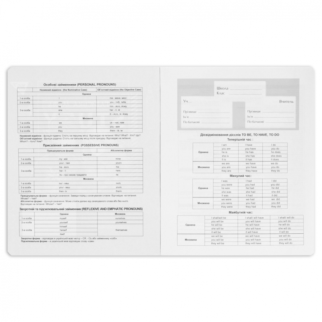 Зошит А5 формату 48 аркушів торгової марки YES з інформацією зі шкільного предмета Англійська мова