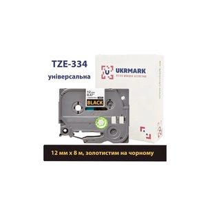Стрічка для принтера етикеток UKRMARK B-T334P, ламінована, 12мм х 8м, gold on black, аналог TZe334 (900556)