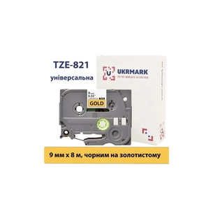 Стрічка для принтера етикеток UKRMARK B-T821P, ламінована, 9мм х 8м, black on gold, аналог TZe821 (900552)